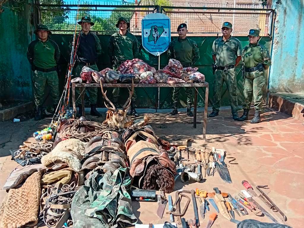 Operativos simultáneos en la zona de Ombucito permitieron incautar 16 bolsas de carne y armas sin documentación.